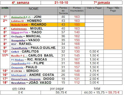 Caros, mais uma vez quero vos pedir desculpa, pois este ano assumi um compromisso que não estou a conseguir dar conta... nem mesmo com a ajuda do nosso colega Carlitos, que me tem feito as contas e me envia por e-mail, Carlitos meu caro, as minhas desculpas, e para o Sérgioei, também porque assumimos os dois este compromisso e eu não tou a fazer a minha parte.